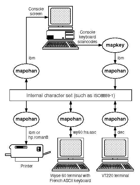 To set up device mapping, see ``Creating a character mapping table''. To configure the system keyboard, see ``Setting the system keyboard''.