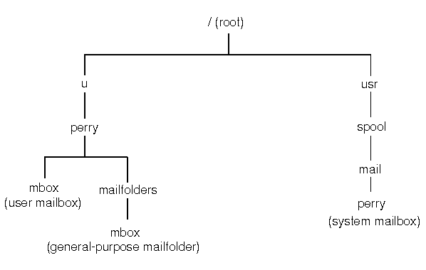 It is useful to think of the e-mail system as a postal system, with the post office being represented by the system mailbox. The system mailbox is located in the /usr/spool/mail directory, and contains a file for each user on your system. Your own personal or user mailbox is the file named mbox in your home directory. Mail sent to you is put in your system mailbox and is automatically saved in your user mailbox after you have read it.