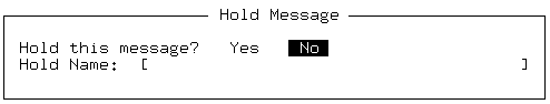 While you are creating a message, press <Esc> and select Quit. You are prompted to hold the message: