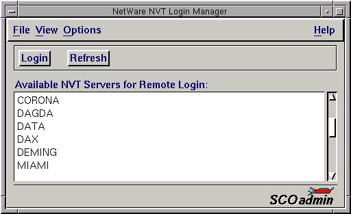 It is possible for users to log into SCO IPX/SPX NVT(TM) servers from any SCO OpenServer system using the NetWare NVT Login Manager or the nlogin(PADM) command. Since these logins use the same protocol (NVT) as DOS clients use to log in to the SCO OpenServer host, it is sometimes useful to ensure that the UNIX to UNIX login is possible before attempting to configure the DOS clients.