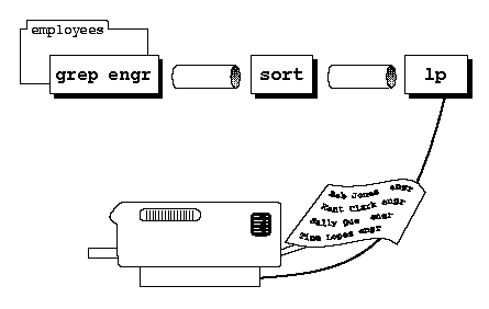 You can use the pipe symbol (|) on a UNIX system to make the output of one command the input of another. To do this, you type the command you want to generate the input, a pipe symbol, the command you want to read the input, and then press <Enter>. You can use pipes to put together as many commands as you like.
