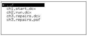 If the file you want is in a subdirectory of the current directory, you must first select that directory in the same way as you select files. Directories are distinguished from files in the listing on the screen because a directory is always followed by a slash (/).