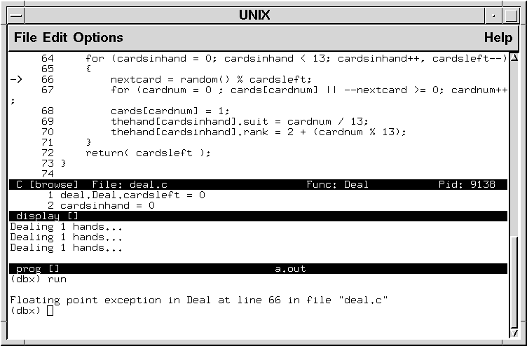 is initially partitioned into two windows -- a program source window with